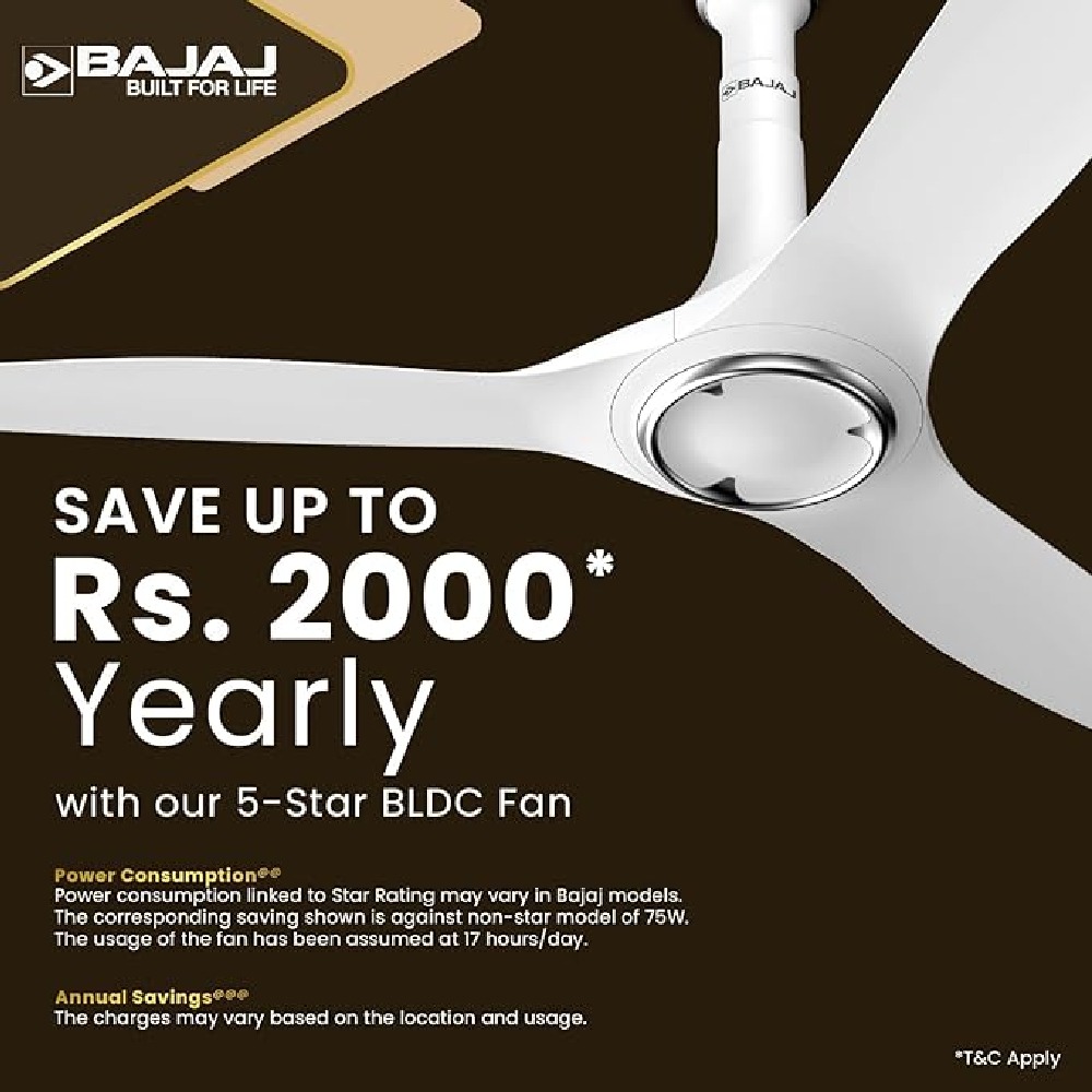 Bajaj Arioso 12DC5R Ceiling Fan 1200 mm (White & Chrome)