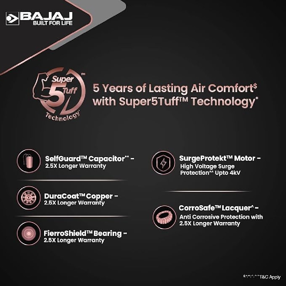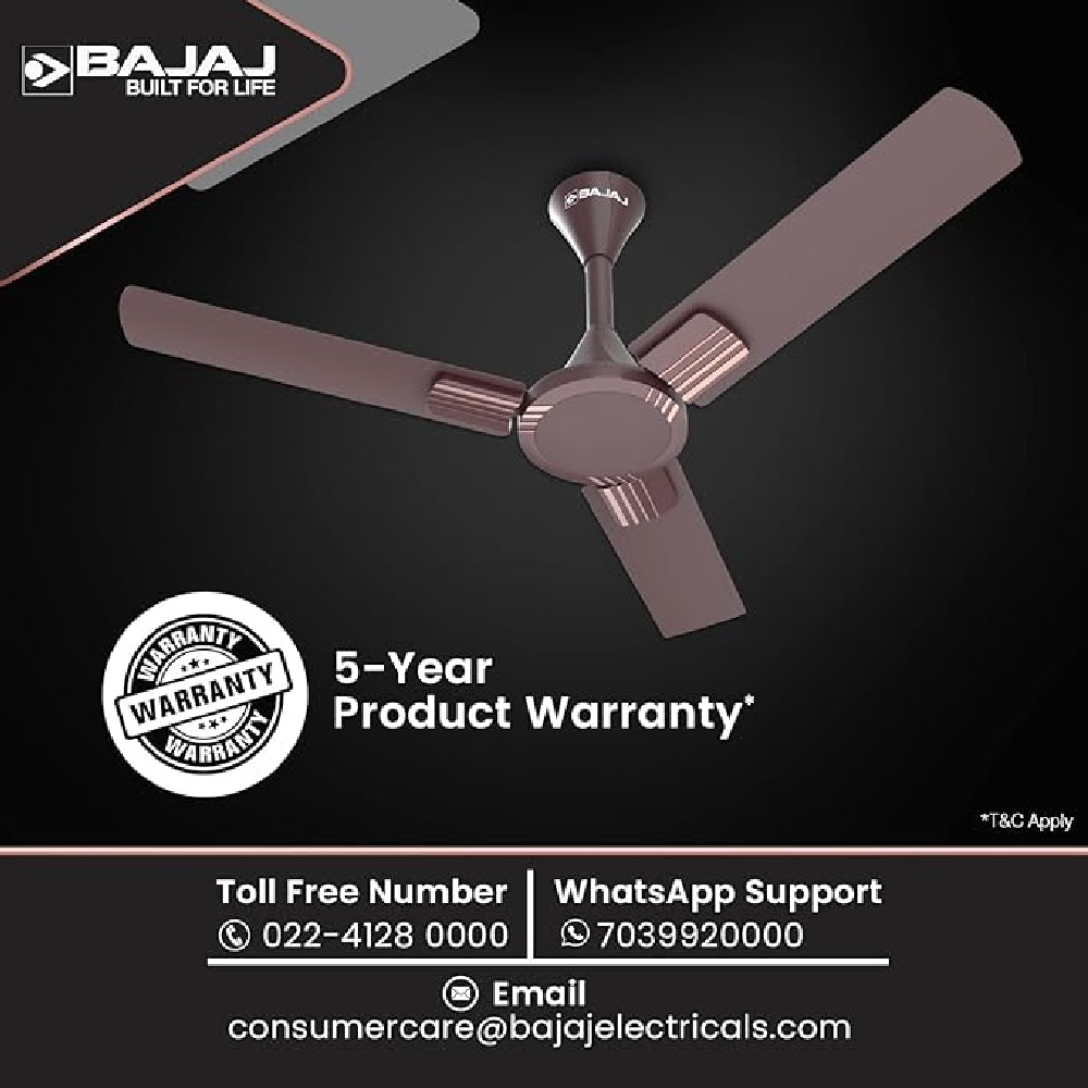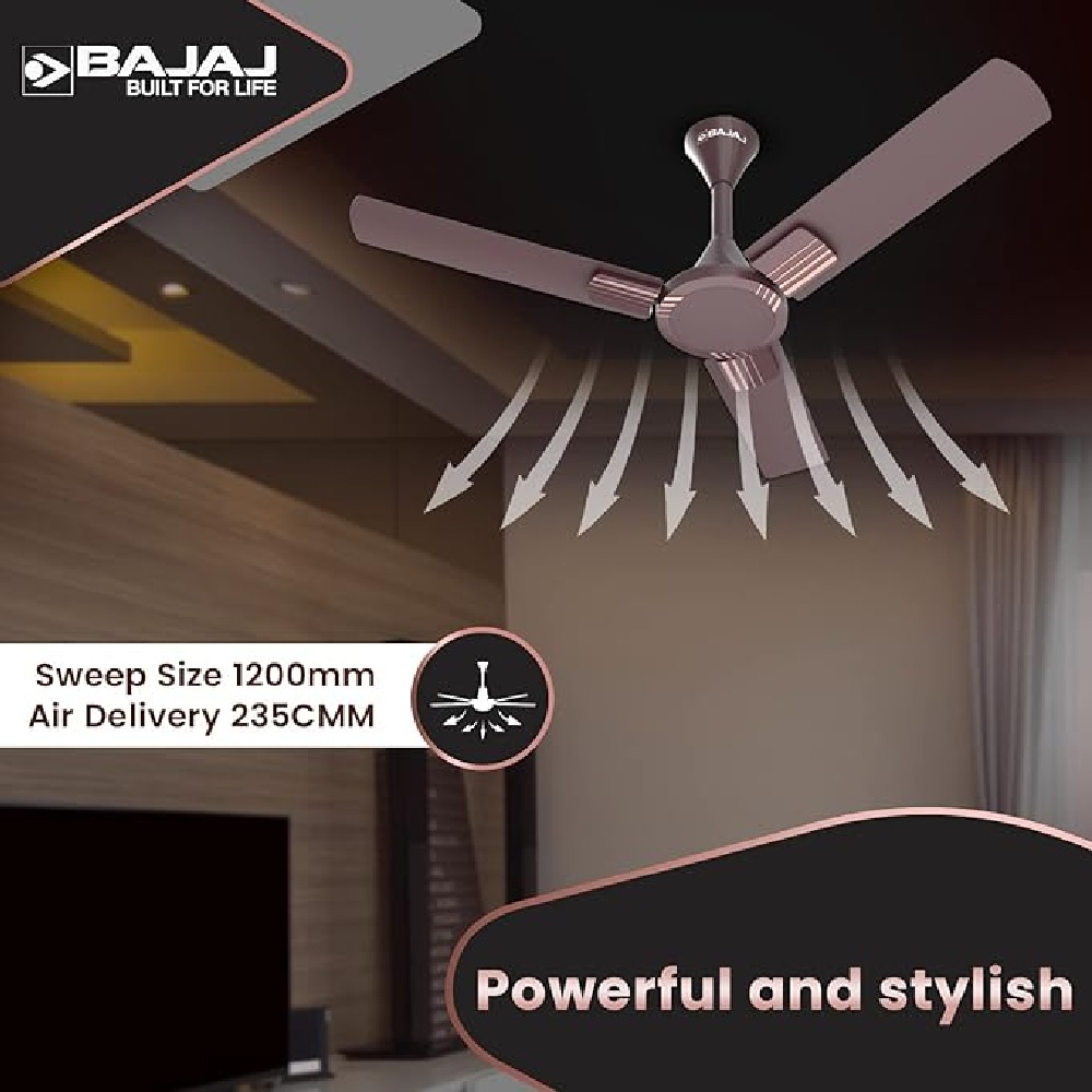 The Bajaj Artisan 12S2 Ceiling Fan is equipped with a robust motor that delivers rapid and efficient air circulation, ensuring quick cooling even in large rooms.