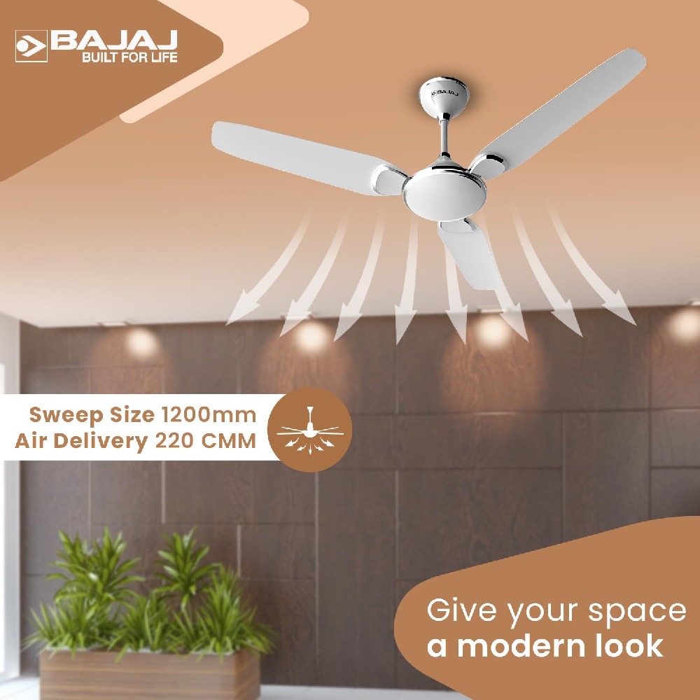 With a 1200 mm sweep, this fan provides wide coverage, making it ideal for bedrooms, living rooms, and offices.