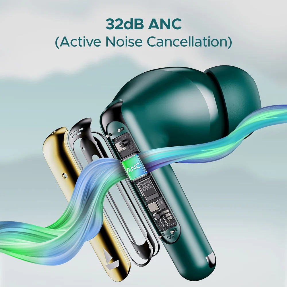 Enjoy up to 6 hours of playback with ANC on (10 hours with ANC off) and an additional 32 hours using the charging case, ensuring non-stop entertainment.