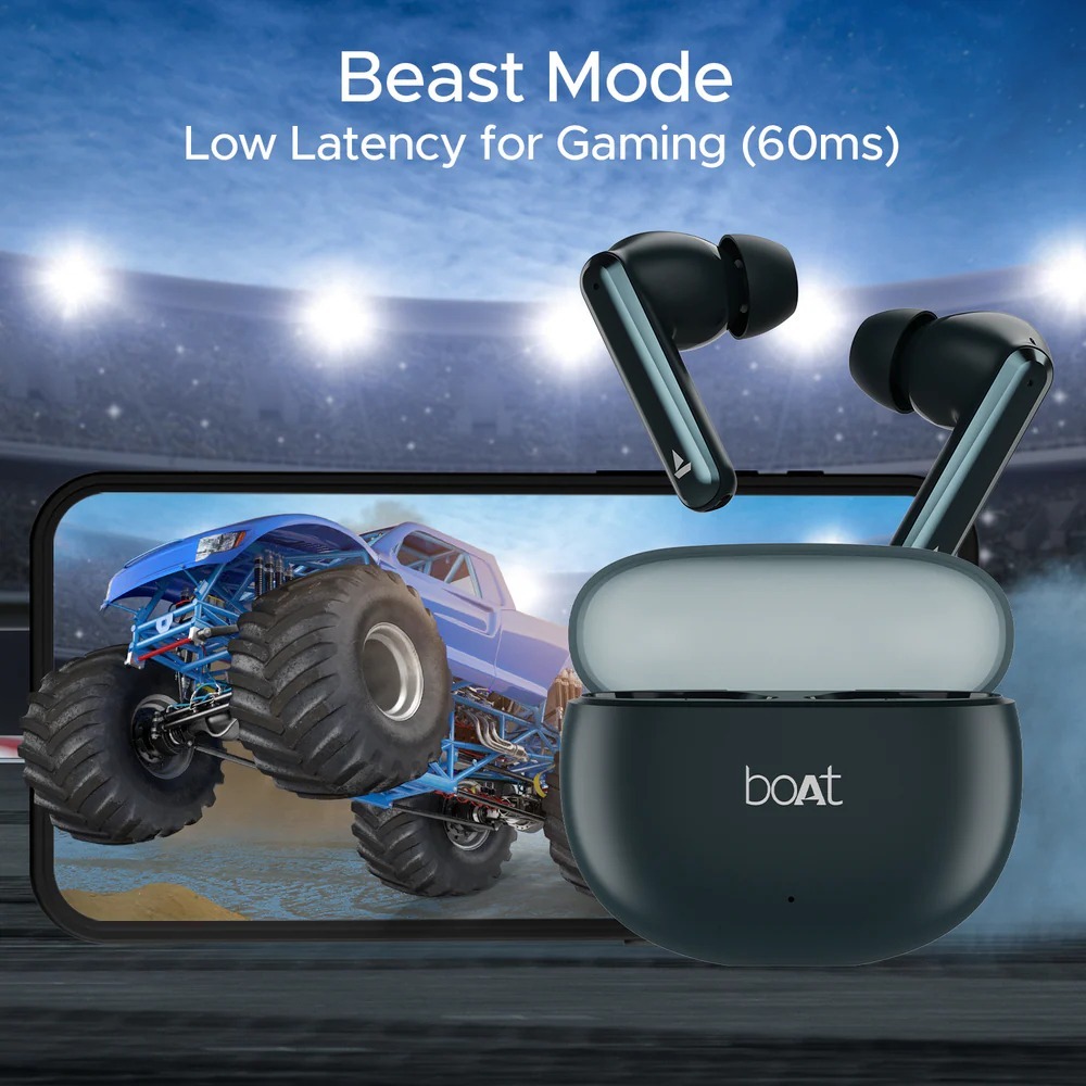 - Features: boAt Signature Sound, Quad Mics with ENx™ Technology for Clear Calls; BEAST™ Mode (≈ 65 ms Low Latency) for Gaming/Video Sync; IPX5 Water & Sweat Resistance; Touch Controls; Voice Assistant Support; IWP™ (Instant Wake & Pair)