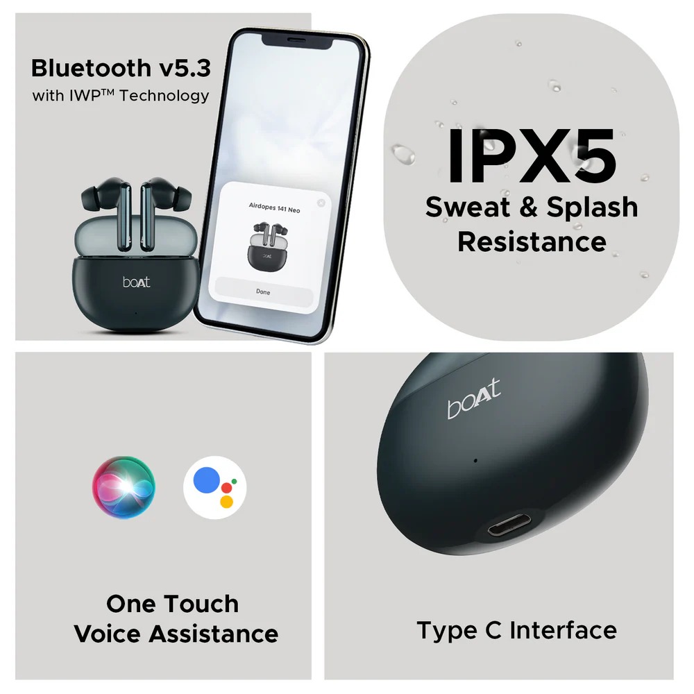 The boAt Airdopes 141 Neo delivers a stylish and powerful wireless audio experience, perfect for music, calls, and gaming on the go.