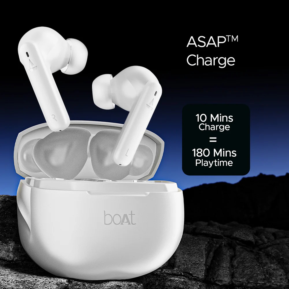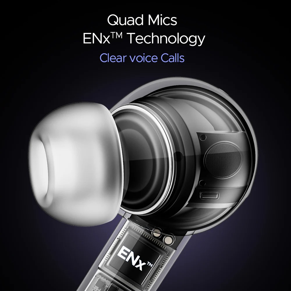 - Features: 35 dB Active Noise Cancellation, Ambient Mode, BEAST™ Mode (65 ms Low Latency), ENx™ Technology with Quad Mics, IWP™ (Instant Wake N’ Pair), ASAP™ Charge (5 minutes = 60 minutes playtime), IPX4 Water Resistance