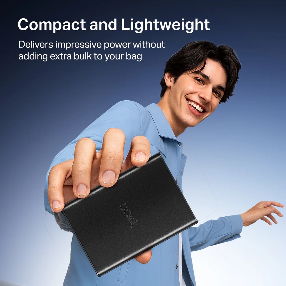 The boAt EnergyShroom PB400 Pro features a 10000mAh battery to keep your devices charged throughout the day.