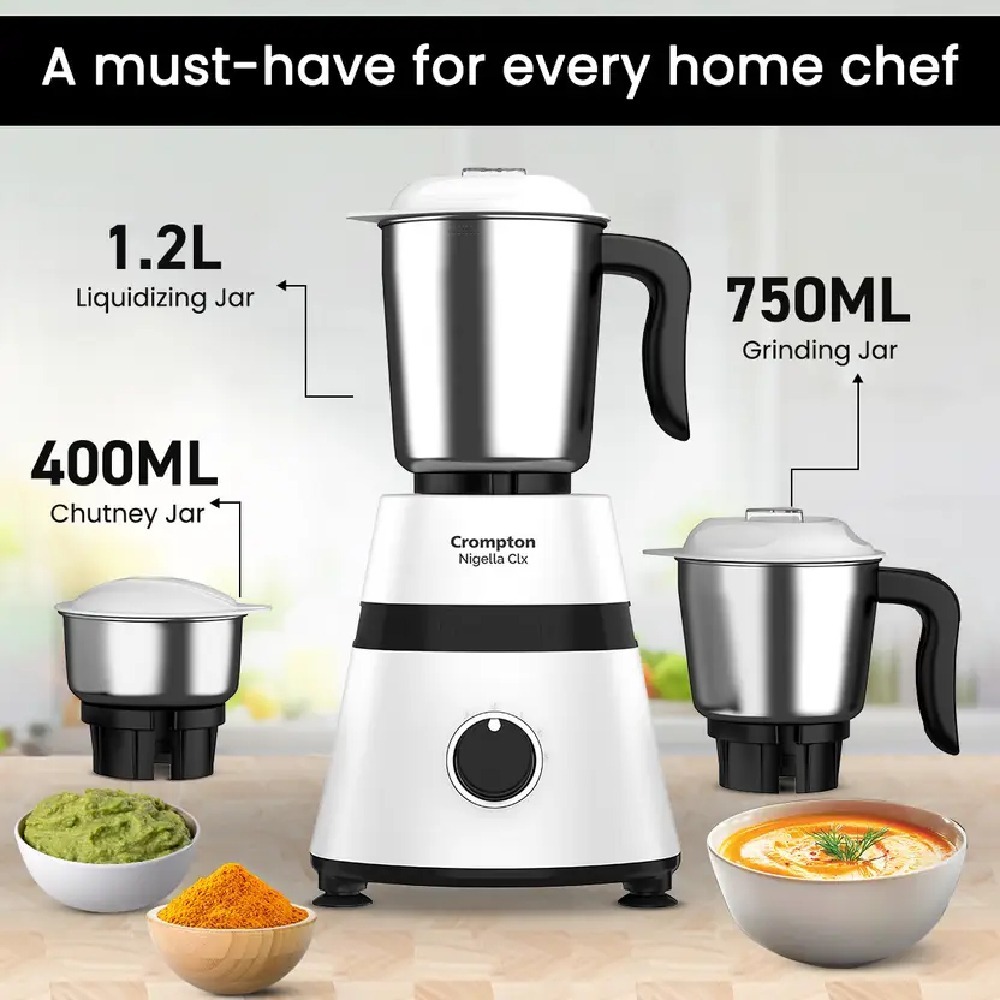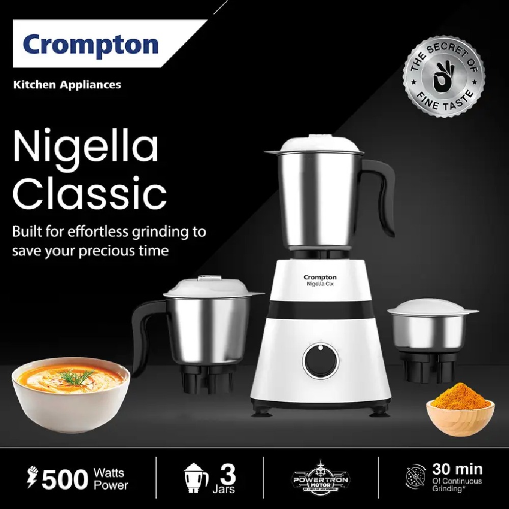 Crompton Nigella Classic 500W 3 Jar Mixer Grinder