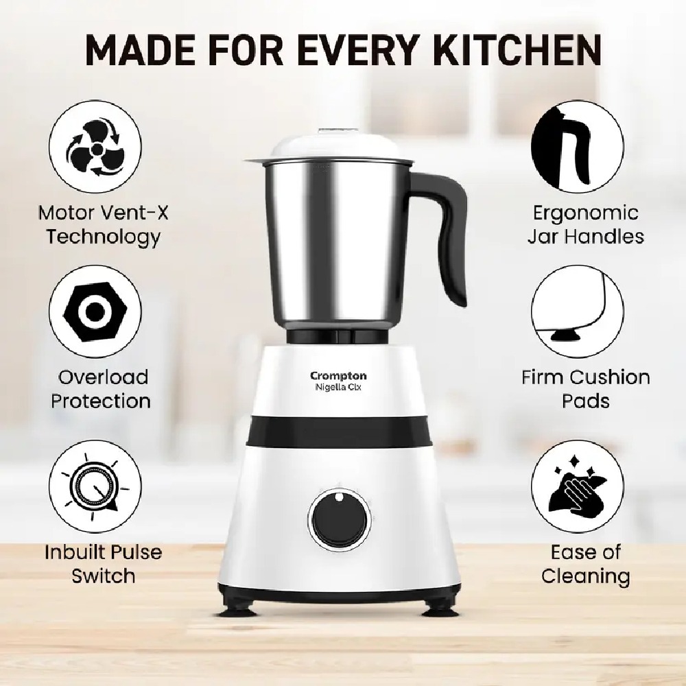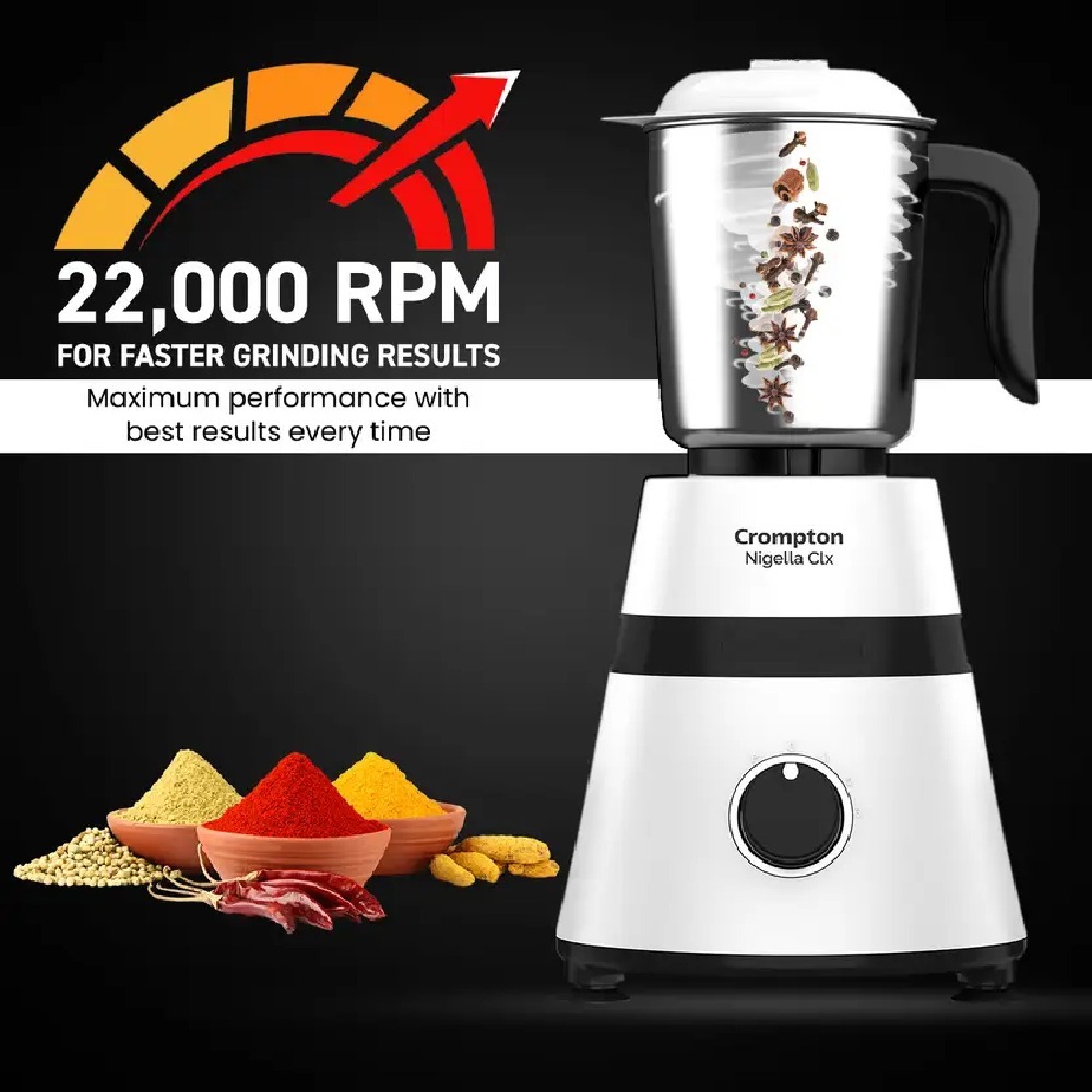 Equipped with a 500W motor and MaxiGrind Technology, the Crompton Nigella Classic handles daily grinding and blending tasks with ease.