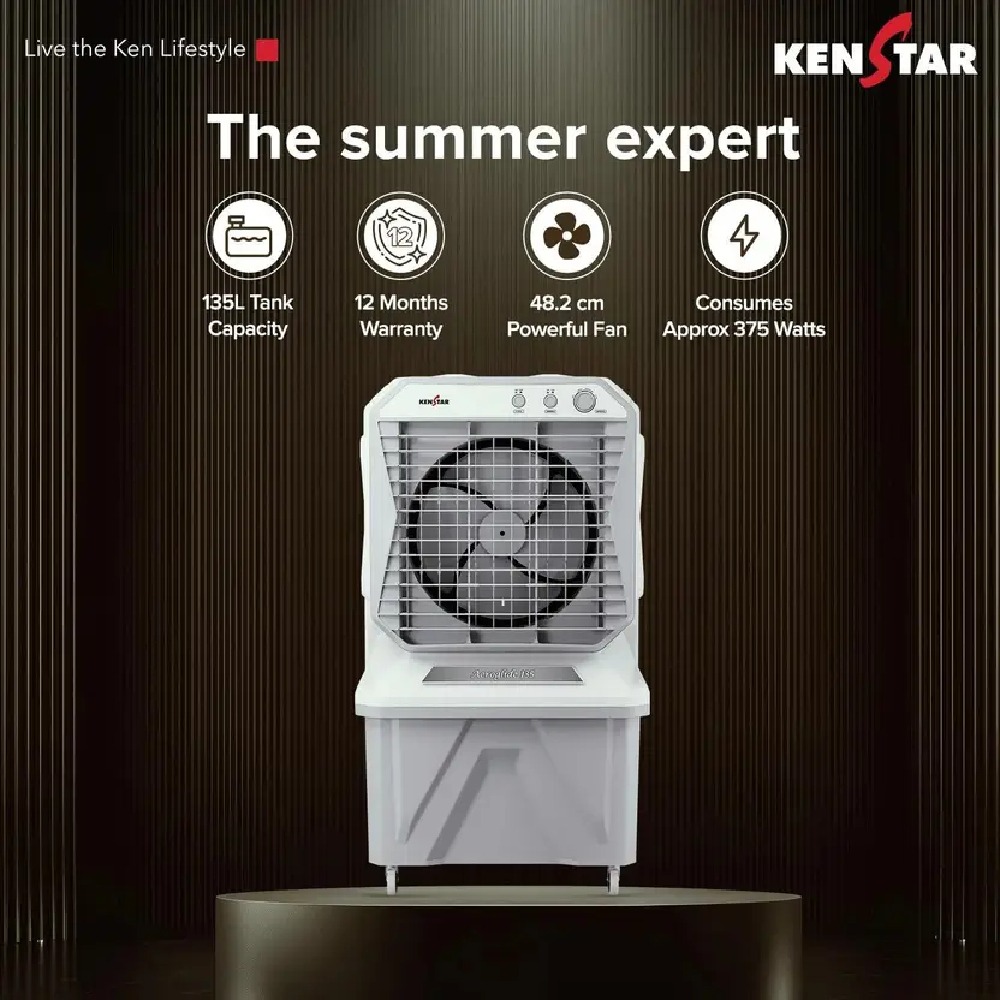 The Kenstar 135 L Desert Air Cooler is designed to deliver powerful and efficient cooling for large spaces, making it ideal for homes, offices, and outdoor areas during extreme summer heat.