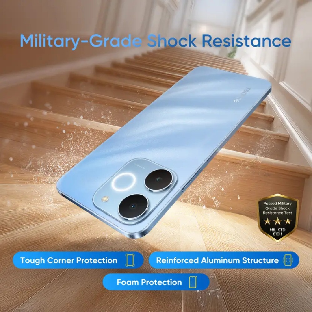 Built with Military-grade Shock Resistance and ArmorShell protection, the realme C71 can withstand drops up to 1.8 meters. Tough Corner Protection adds an extra layer of durability against accidental impacts.