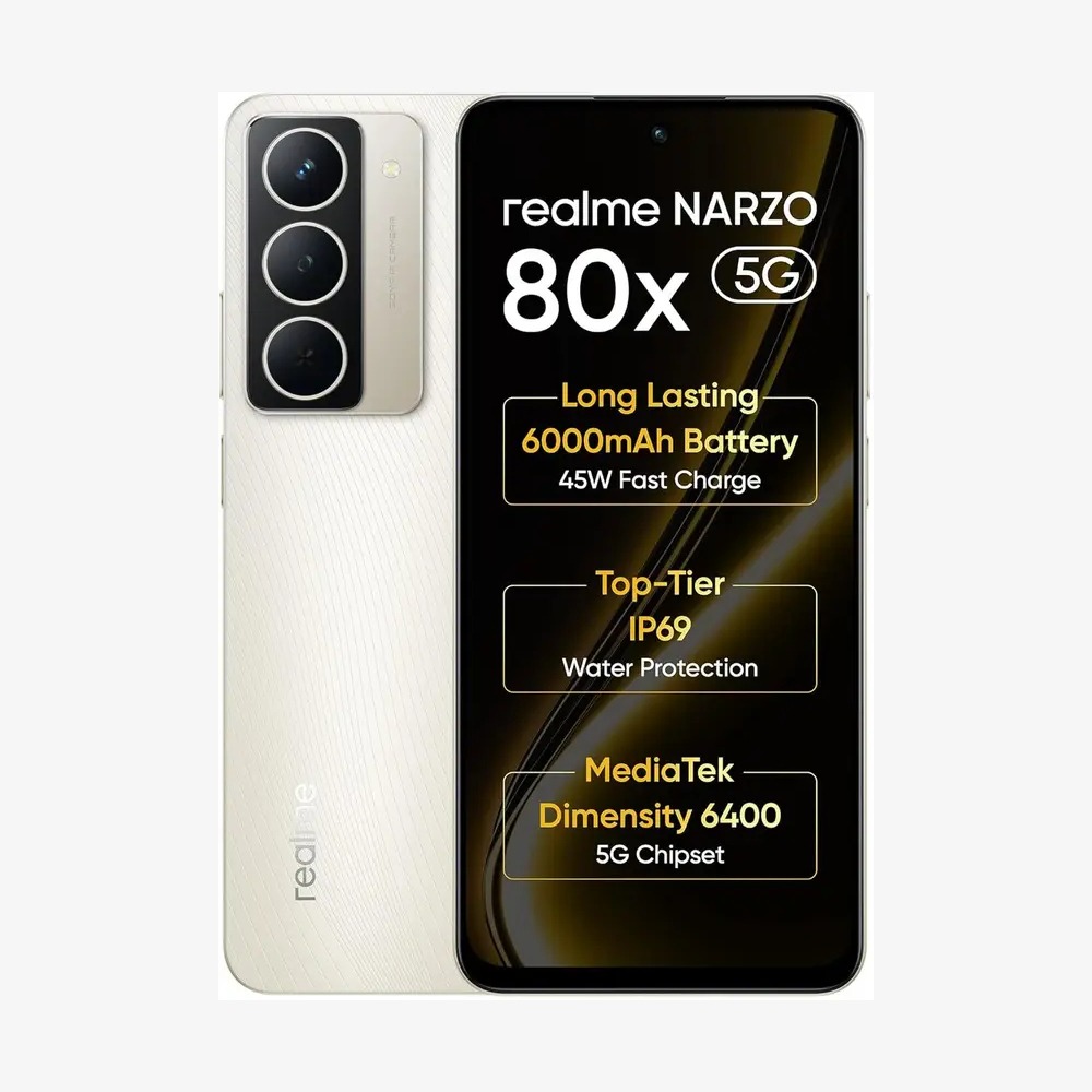 | Color | Realme Narzo 80x Deep Ocean, Realme Narzo 80x Sunlit Gold |